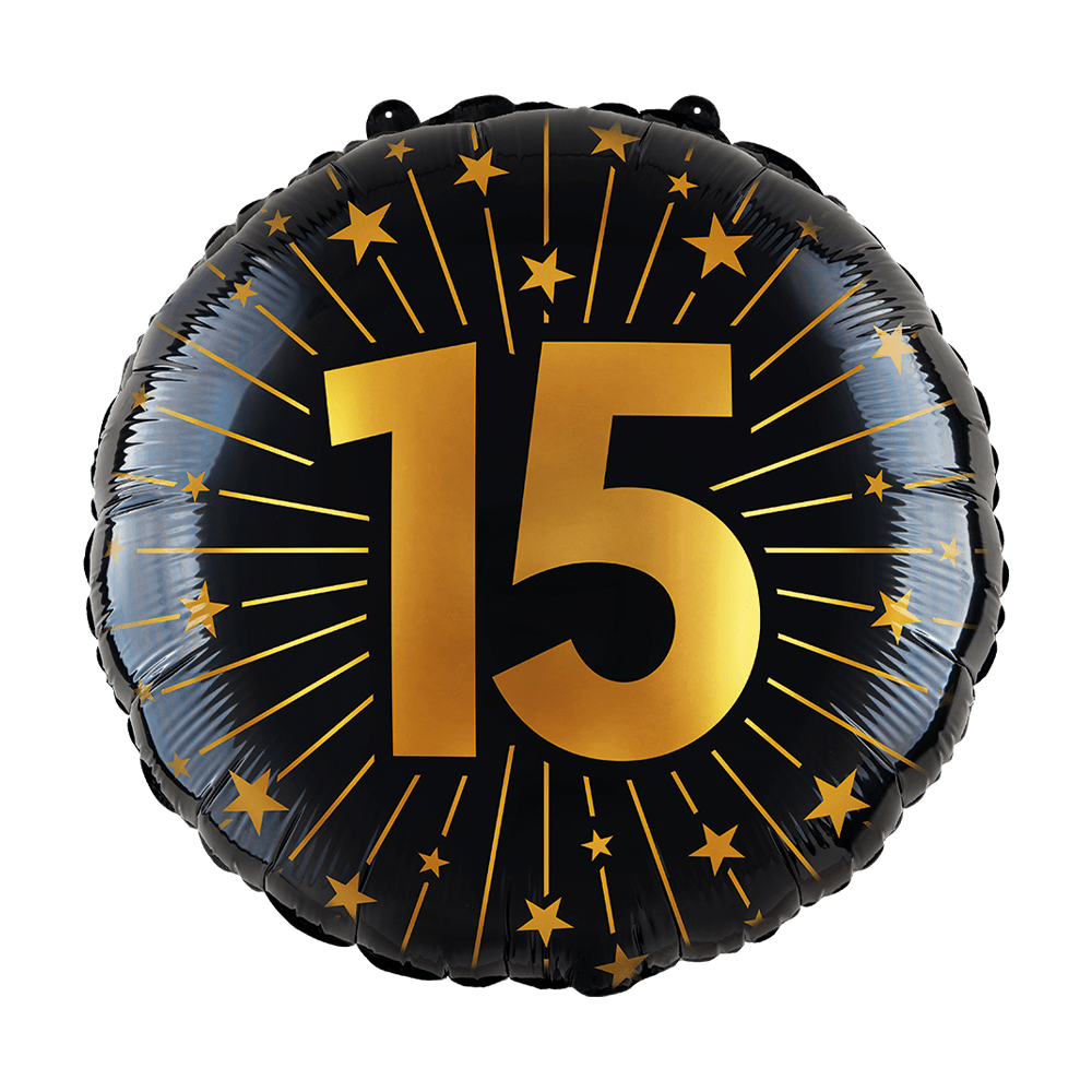 15 år Heliumballong Guld Svart Tom 45cm