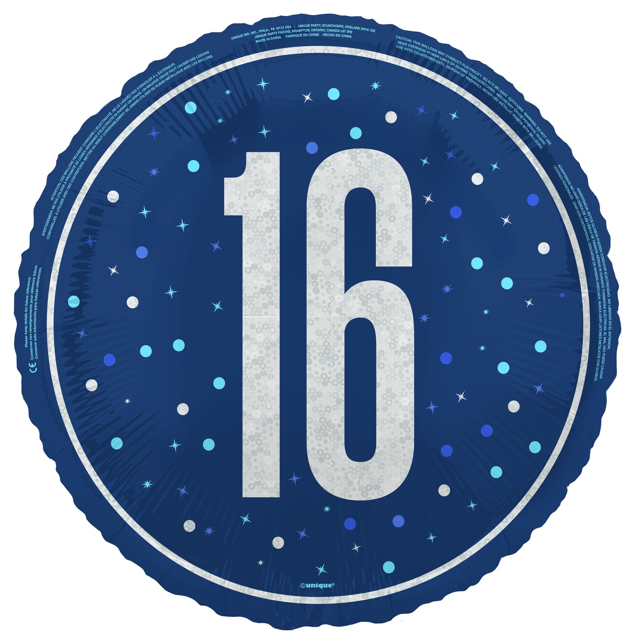 16 år Heliumballong blå tom 45 cm