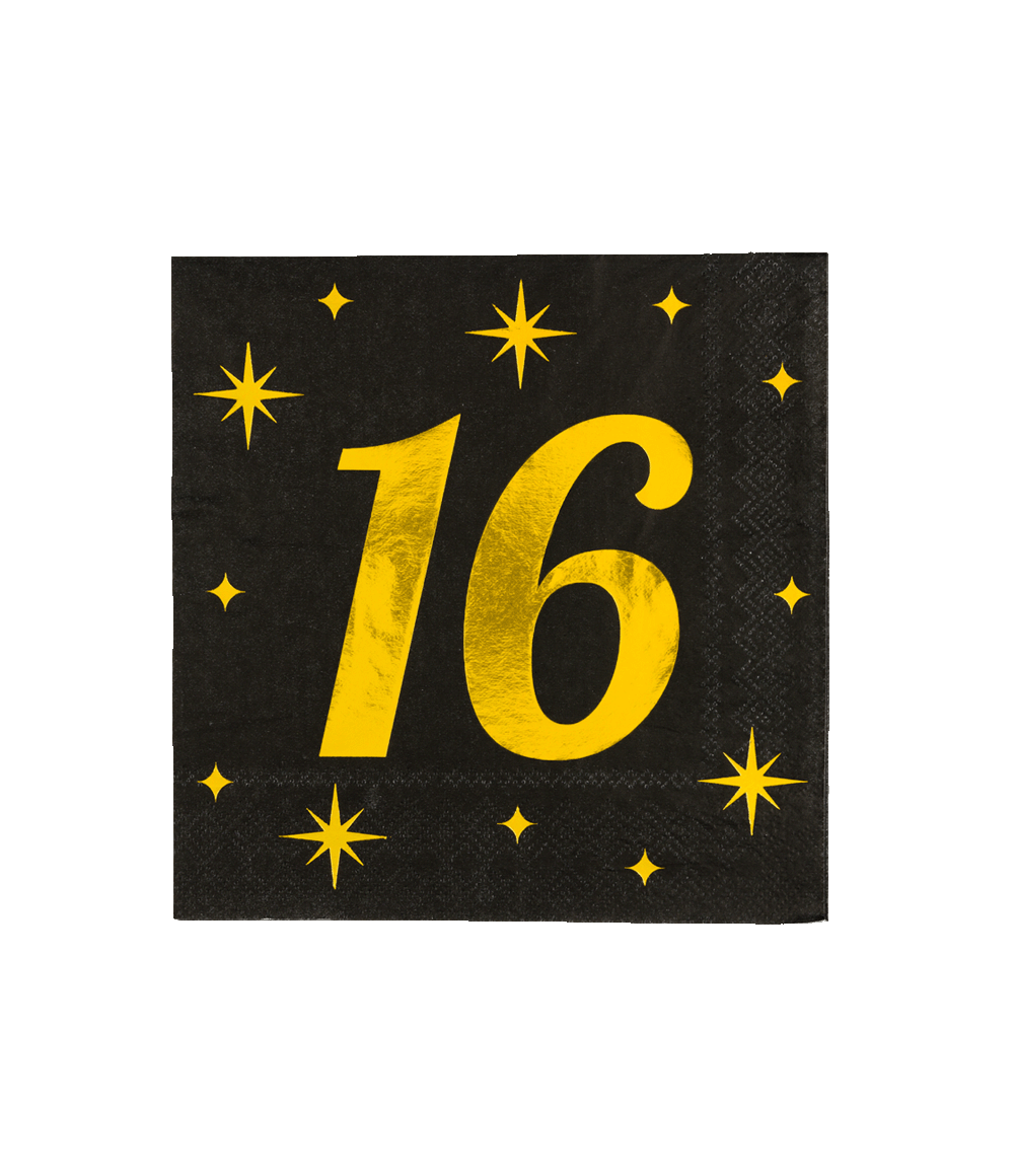 16 år Servetter Svart Guld 19cm 16st