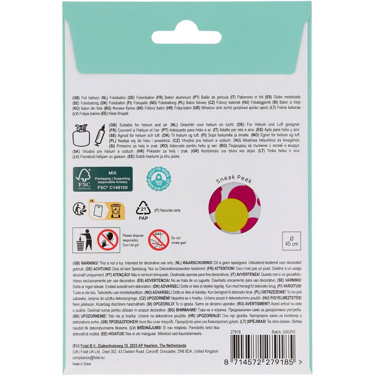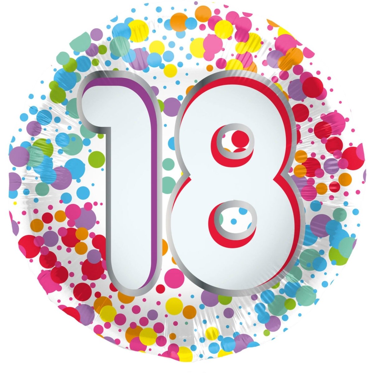Regnbågsfärgade prickar för 18 år! Folieballong - 18 - Regnbåge - 45 cm. Innehåll: 1 folieballong. Kan t.ex. användas under följande fest/festtillfällen: Födelsedag. En ballong som kommer att göra vilken 18-åring som helst glad. Med färgade prickar som påminner om en regnbåge. Lämplig för helium och luft. Denna artikel är tillverkad av folie.