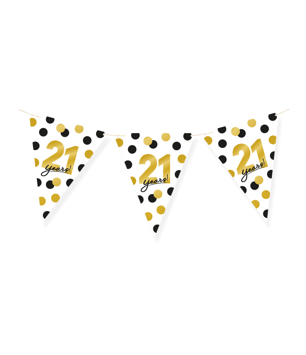 Pappersflaggorna Celebration! pappersflaggor - 21 är de perfekta flaggorna för att liva upp en fest för en 21-åring! Denna flagglinje sticker ut med sin distinkta design och eftersom flaggorna är tillverkade av papper tänker du också på miljön! Pappersflaggorna är 6 meter långa. Kombinera dem med de matchande celebration! ballonger!