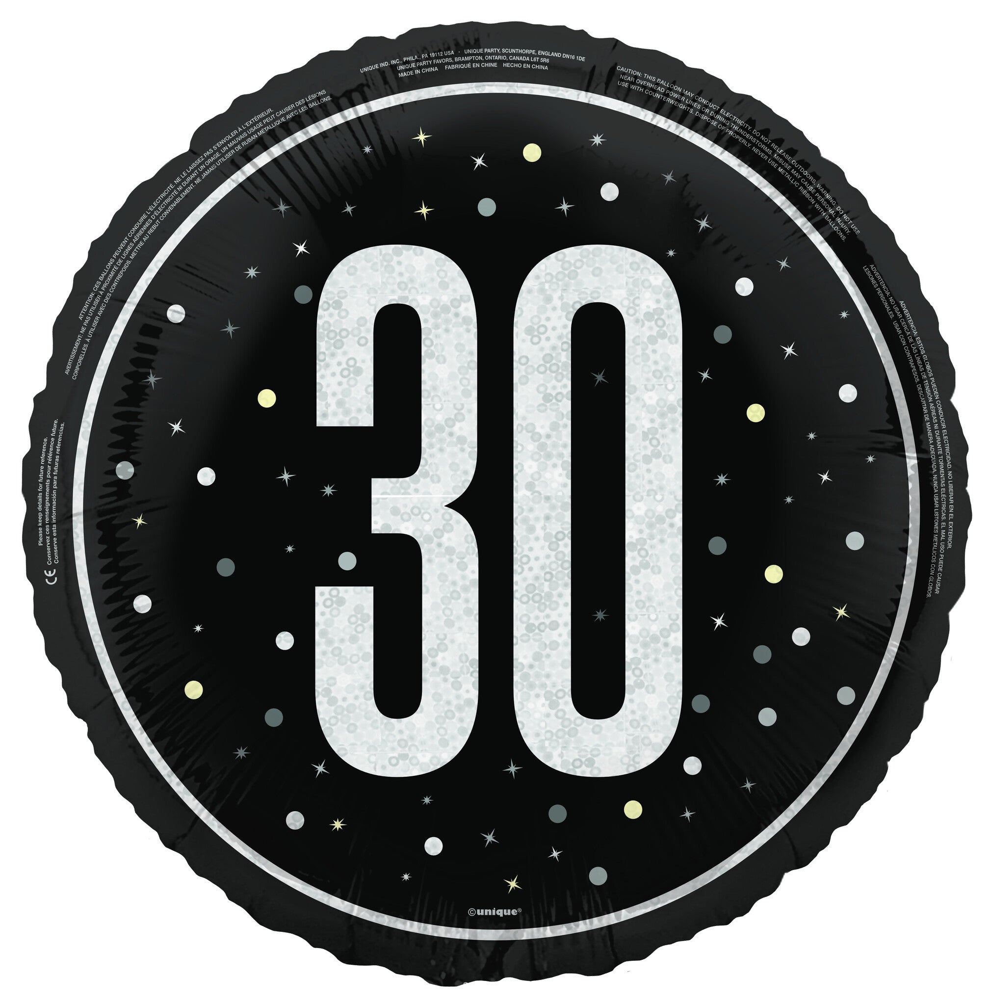 30 år Heliumballong Svart Vit Tom 45cm