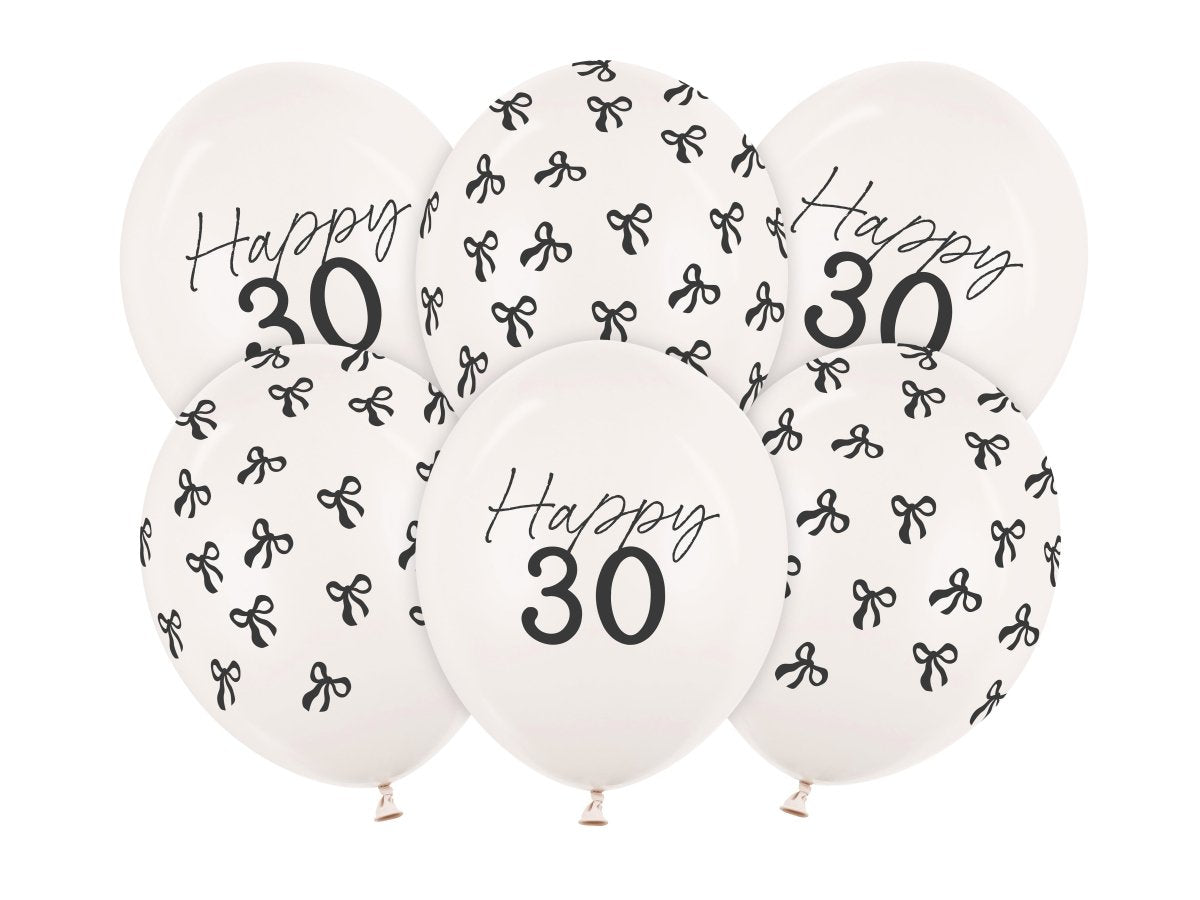 30 år Ballonger Svartvit rosett 30cm 6st