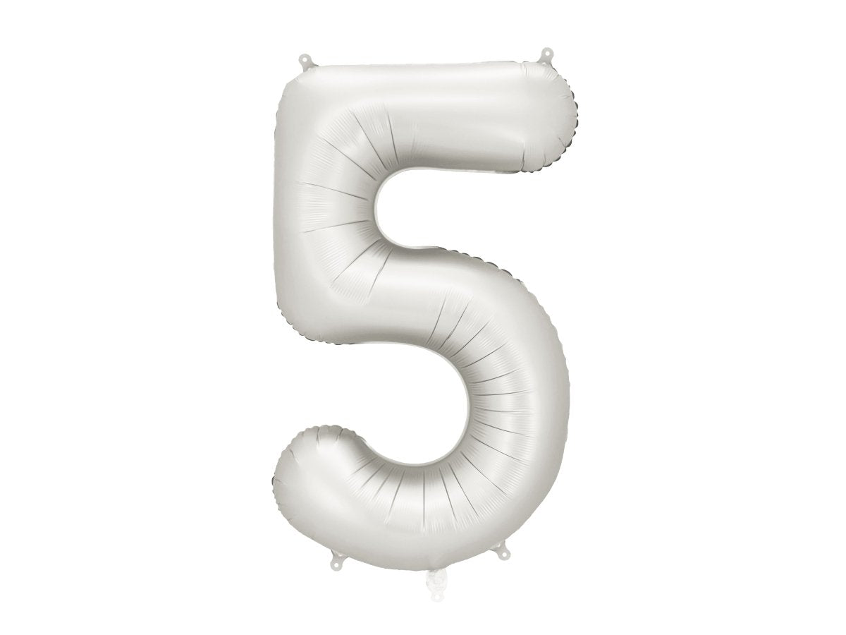 5 års figurballong silver satinfolie tom 86 cm