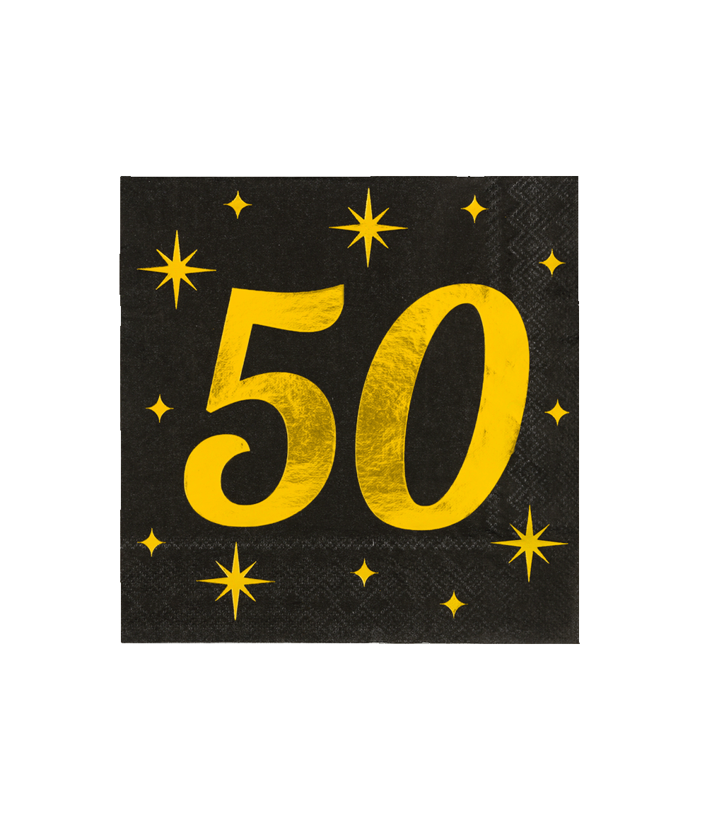 50 År Servetter Svart Guld 19cm 16st