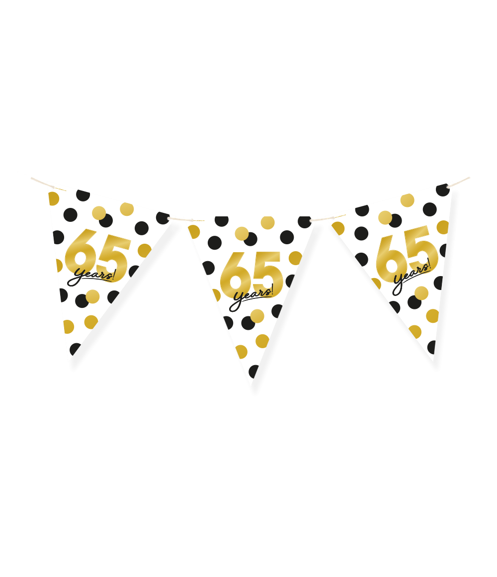 Pappersflaggorna Celebration! pappersflaggor - 65 är de perfekta flaggorna för att liva upp en fest för en 65-åring! Flagglinjen sticker ut med sin speciella design och eftersom flaggorna är tillverkade av papper tänker du också på miljön! Pappersflaggorna är 6 meter långa. Kombinera dem med de matchande celebration! ballonger!