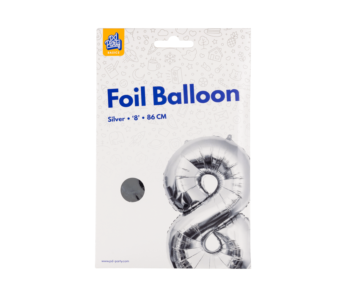 De silverfärgade nummerballongerna från Basic-kollektionen från Paper Dreams är det perfekta tillskottet för att förvandla varje tillfälle till en festlig och glad atmosfär. Oavsett om det är en födelsedag, ett jubileum, ett bröllop eller något annat speciellt firande, ger folieballong silver - nr 8 glitter till alla utrymmen. Denna stora silvernummerballong mäter hela 86 cm, vilket gör den till ett riktigt blickfång.