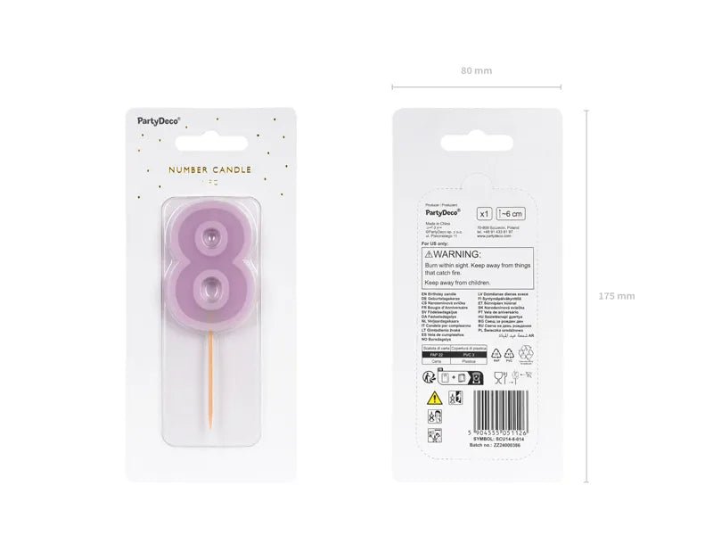 Förpackningsinnehåll: födelsedagsljus nummer 8