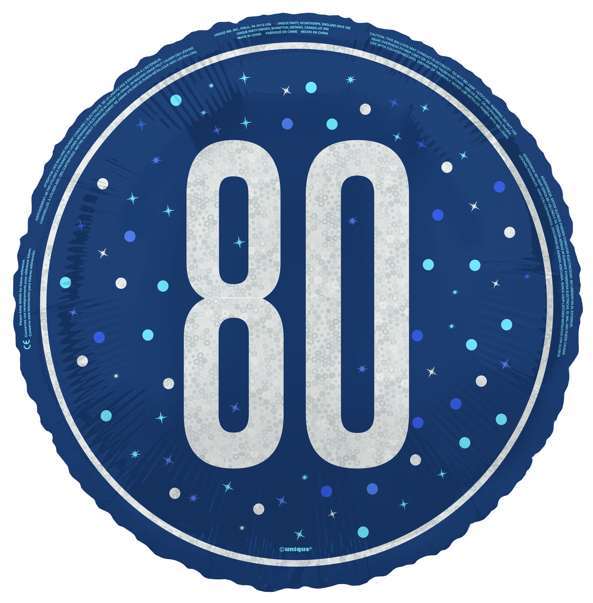 80 år Heliumballong Blå Tom 45cm