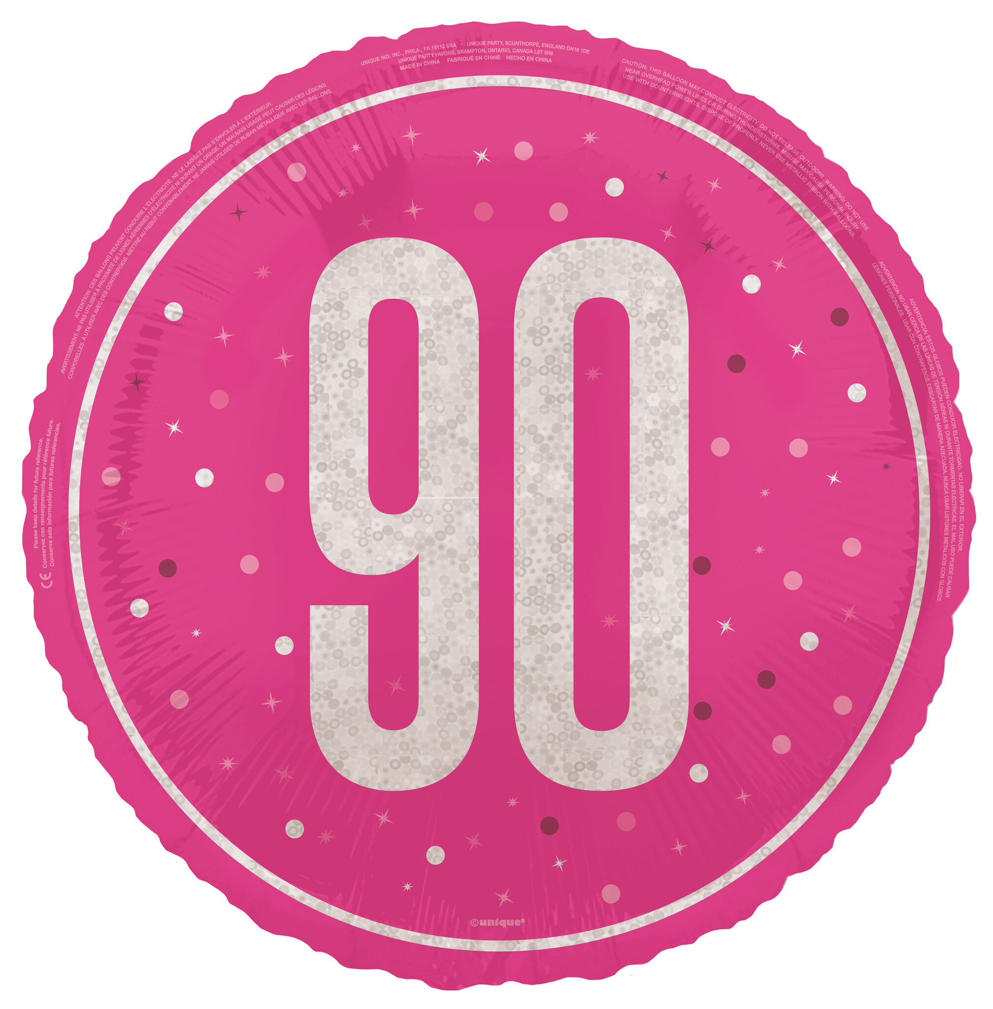 90 år Heliumballong Rosa Tom 45cm