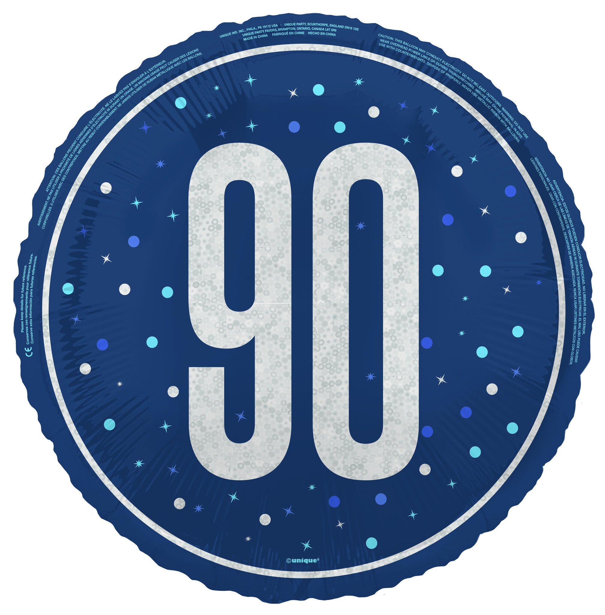 90 år Heliumballong Blå Tom 45cm