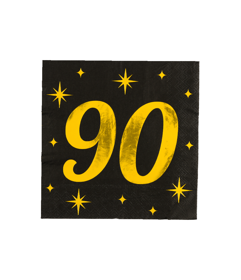 90 År Servetter Svart Guld 19cm 16st