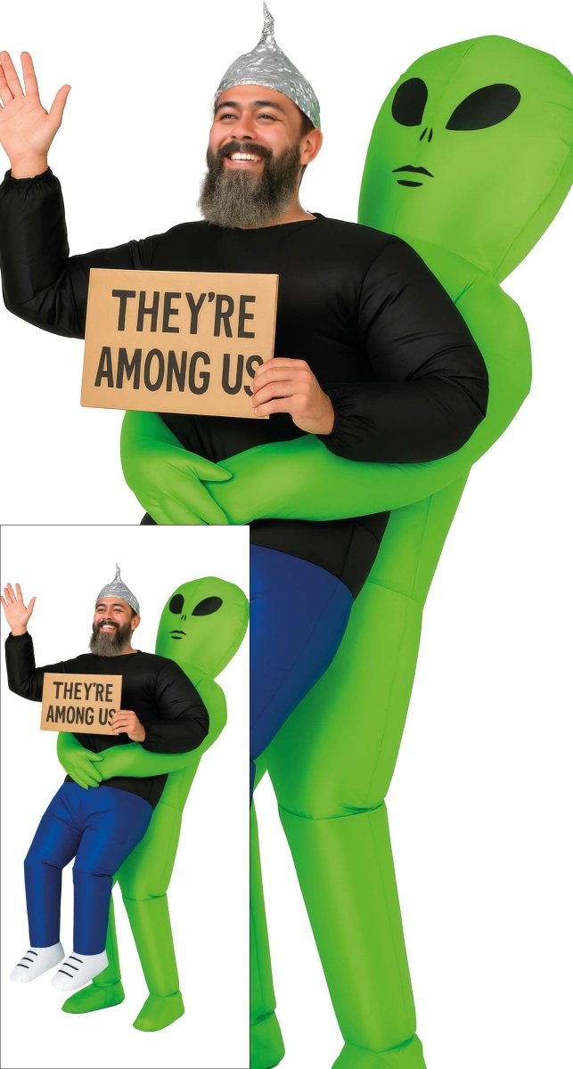 Stick ut på vilken fest som helst med denna dråpliga Carry Me-dräkt där det ser ut som att en utomjording bär runt på dig! Tack vare den inbyggda fläkten blåser dräkten lätt upp sig själv och håller sig i form hela kvällen. Perfekt för maskerader, karnevaler eller festivaler.