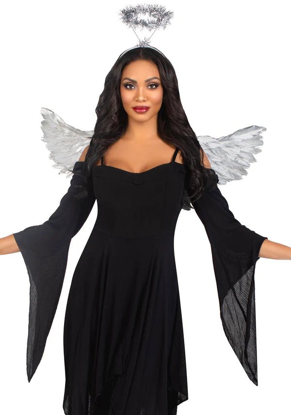 Skina som en ängel med det 2-delade Metallic Angel Wings och Tinsel Halo Headband-setet! 👼✨