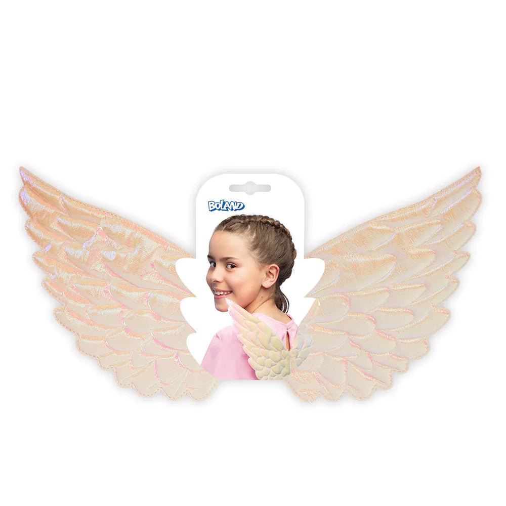 De här magiska vingarna i skimrande pärlvit färg ger en förtrollande touch till alla outfits. Den behändiga storleken gör vingarna perfekta för både barn och vuxna. Ett måste för fantasifulla barnkalas, speciella festivalkläder eller en förtrollande karnevalsdräkt som ängel eller älva.
