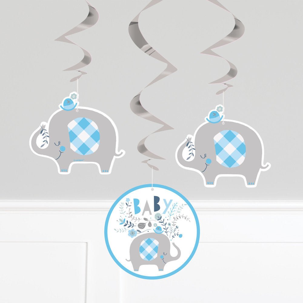 Baby Elefant Hängande Dekoration Blå 66cm 3st