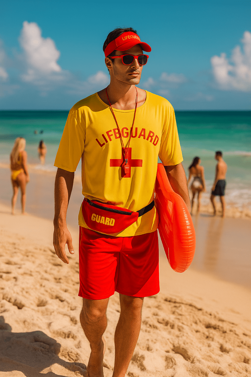 Med den här tuffa och igenkännliga livräddarlooken är du redo att hålla ett öga på saker och ting eller bara festa hårt!