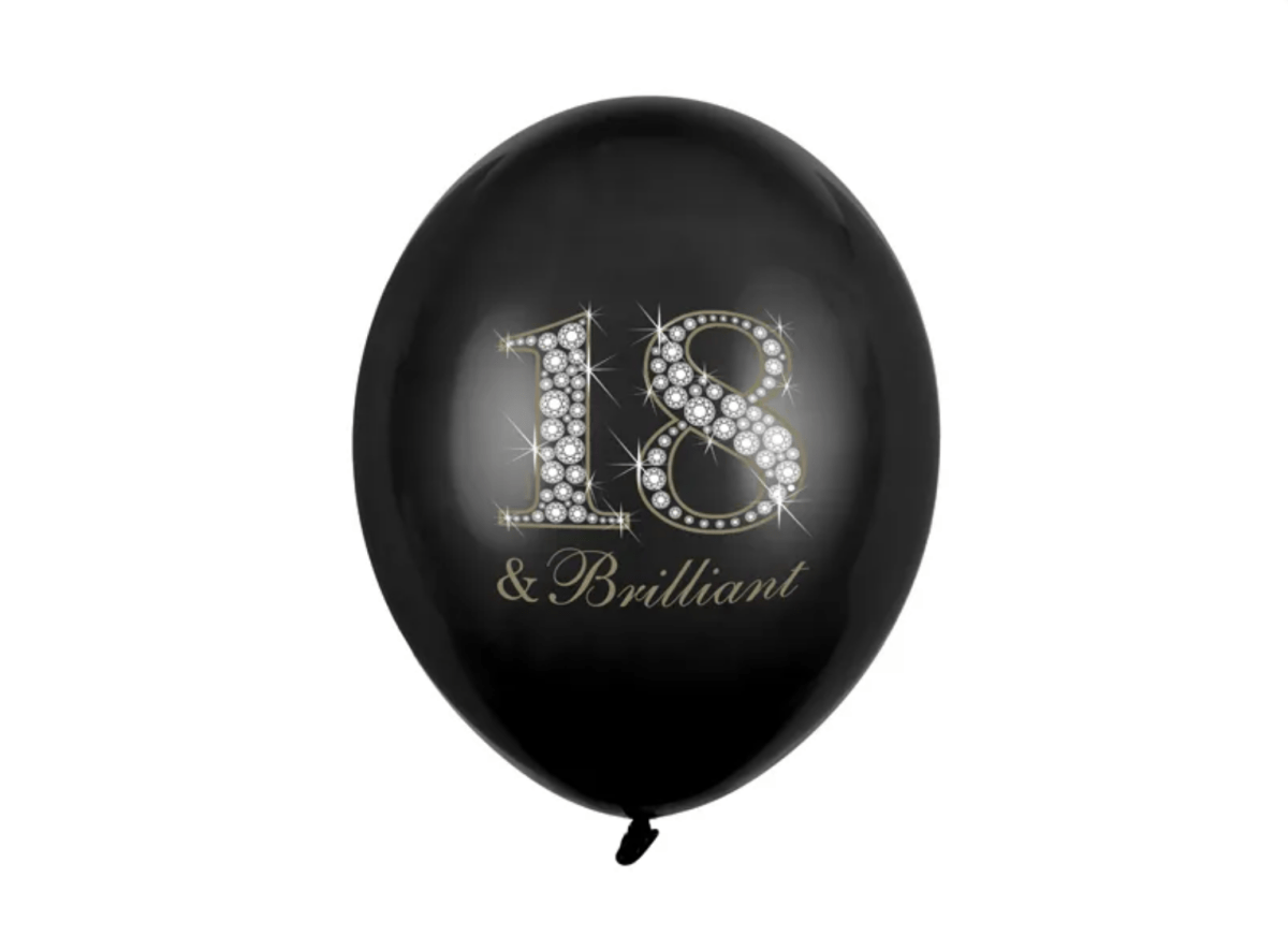 Ballonger 18 år & briljant svart 30cm 6st