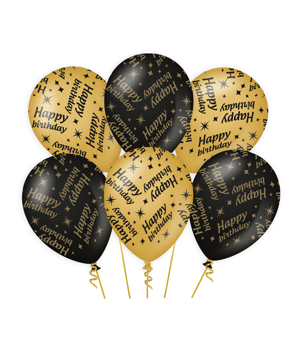 Ballonger Happy Birthday Guld Svart 30cm 6st