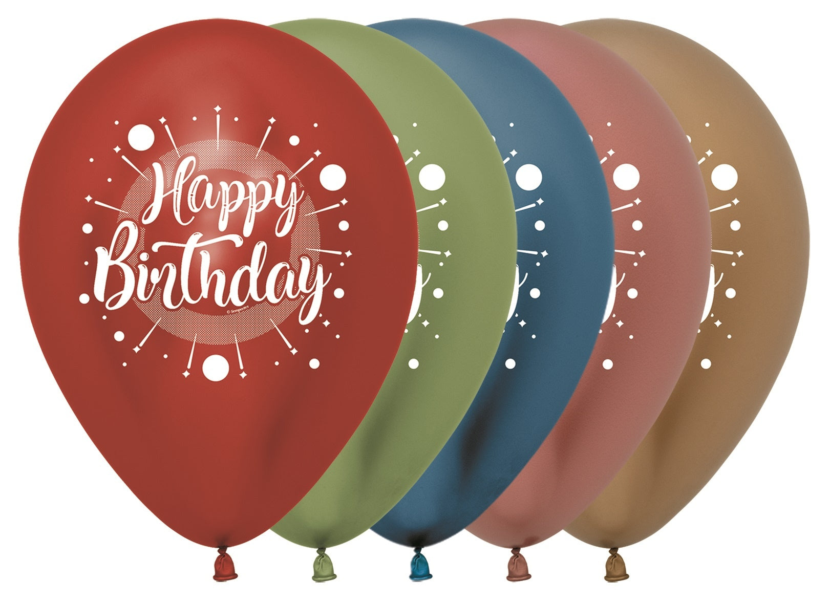 Ballonger Happy Birthday Mångfärgad Reflex Mix 30cm 25st