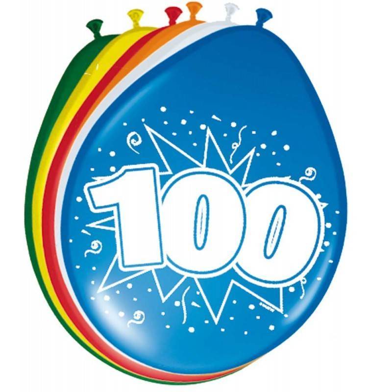 100 års Ballonger 30 cm 8 st. Innehåll: 8 st latexballonger. Kan t.ex. användas under följande fest/festtillfällen: födelsedag, jubileum. Varje ballong är 12 tum/30 cm. Artikeln är tillverkad av latex.