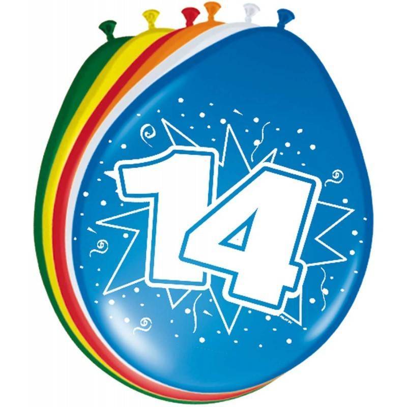 14 års Ballonger 30 cm 8 st. Innehåll: 8 latexballonger. Kan t.ex. användas vid följande fest-/partytillfällen: födelsedag, barnkalas, jubileum. Varje ballong är 12 tum/30 cm. Artikeln är tillverkad av latex.