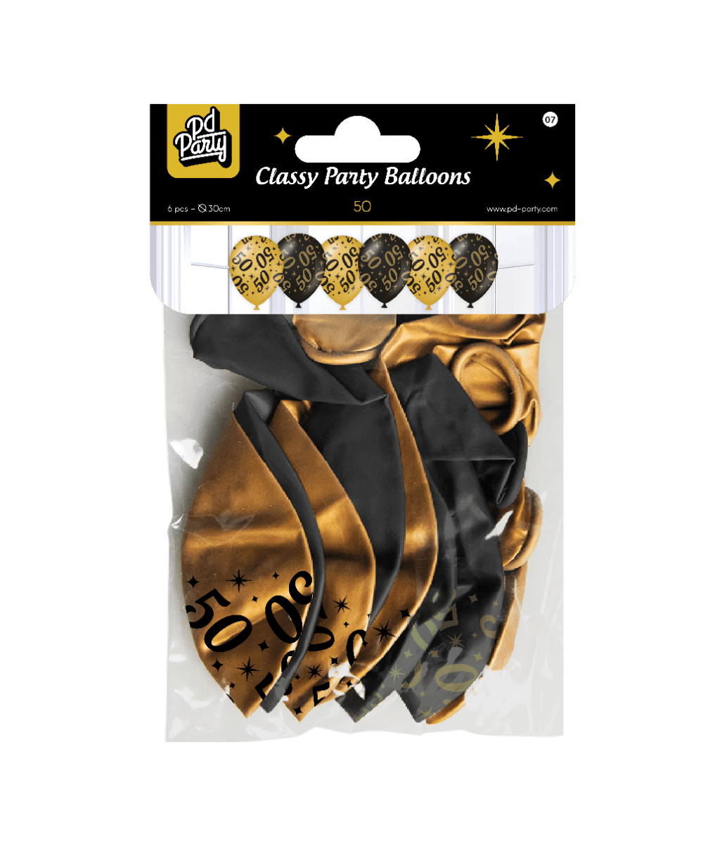 Ballonger 50 år Guld Svart 30cm 6st