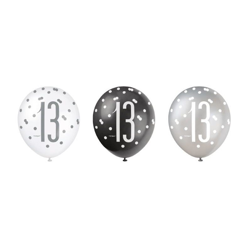 Ballonger 13 år Prickar Svart 30cm 6st