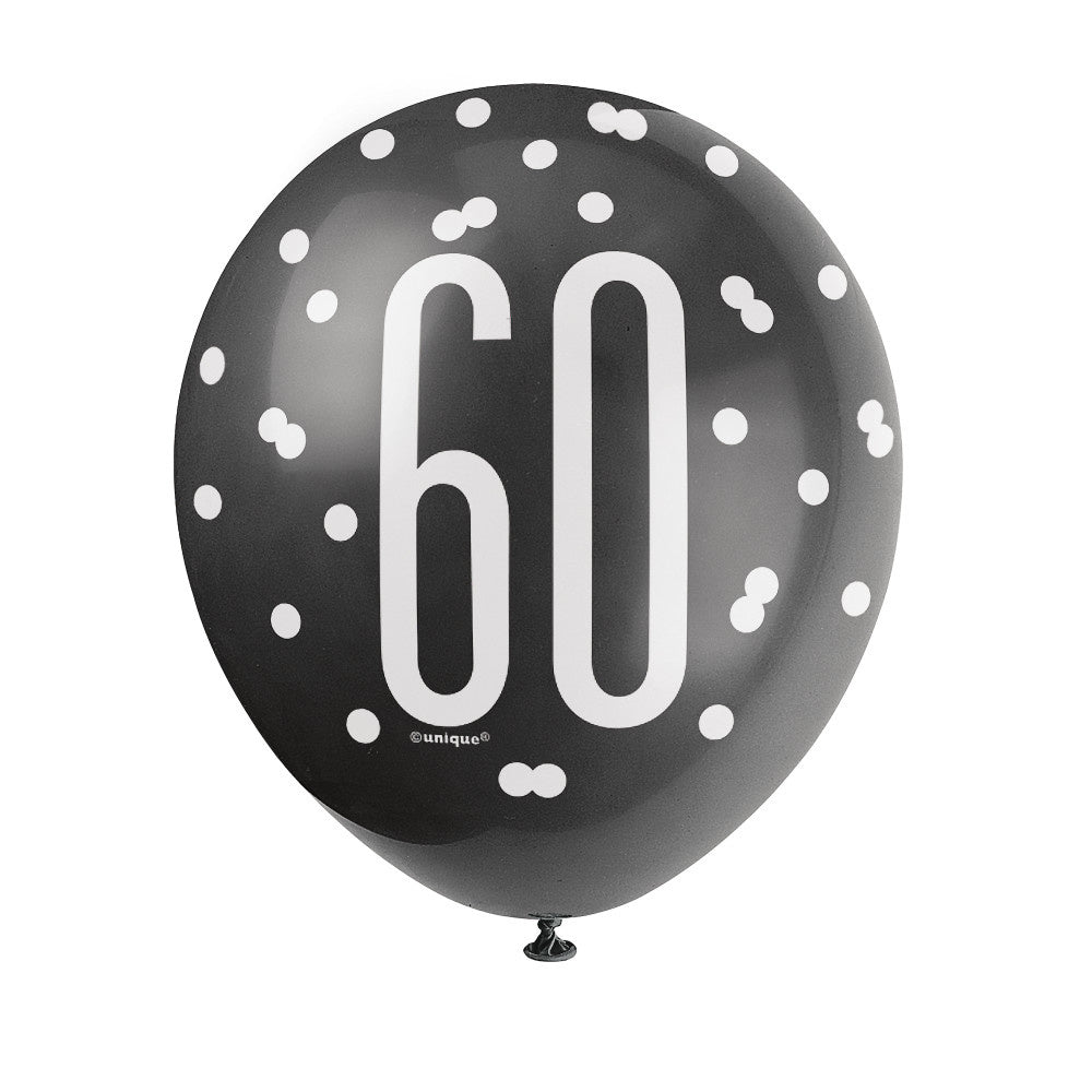 Ballonger 60 år Prickar Svart 30cm 6st