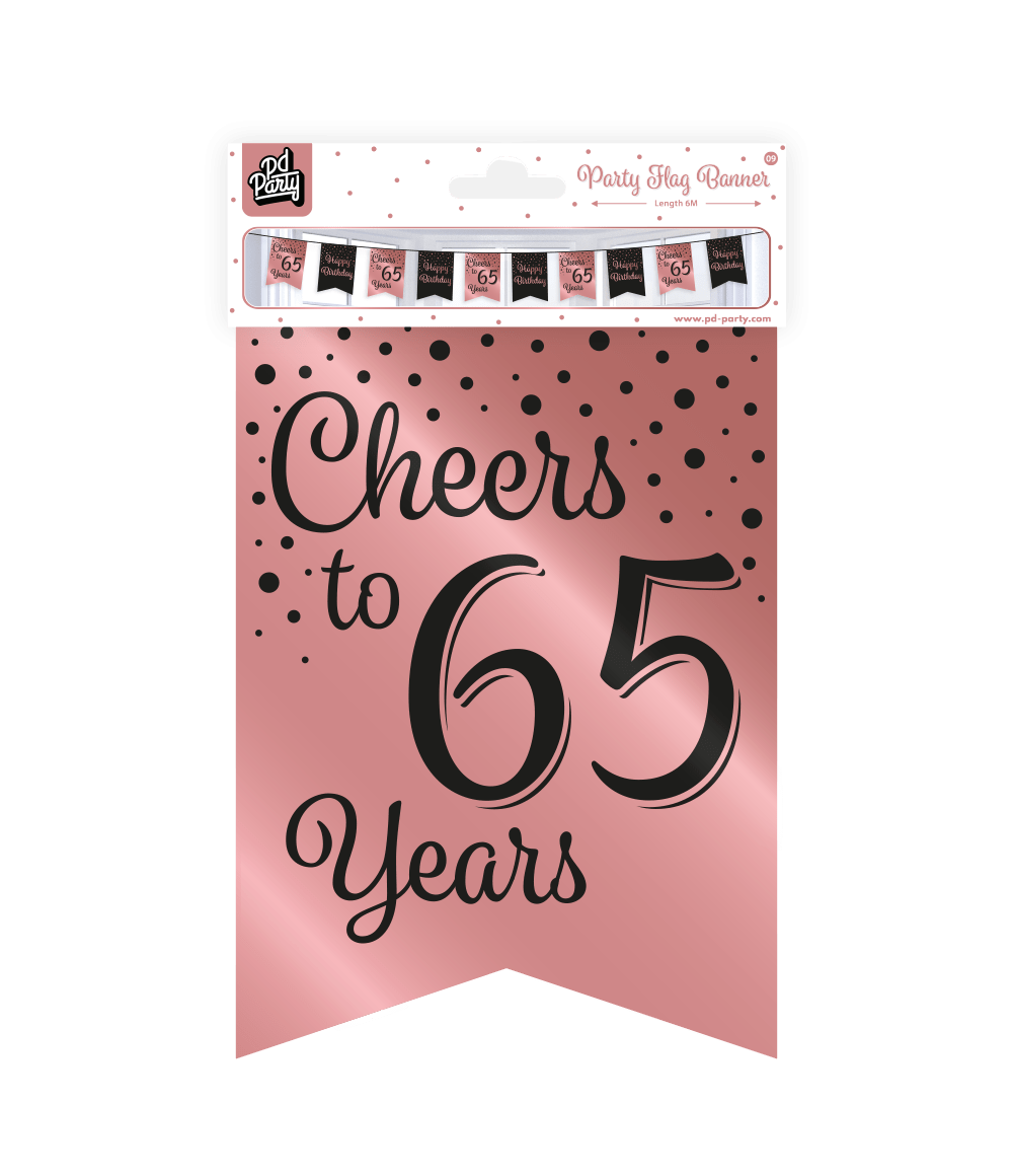 Banner 65 år Rosa Svart 6m