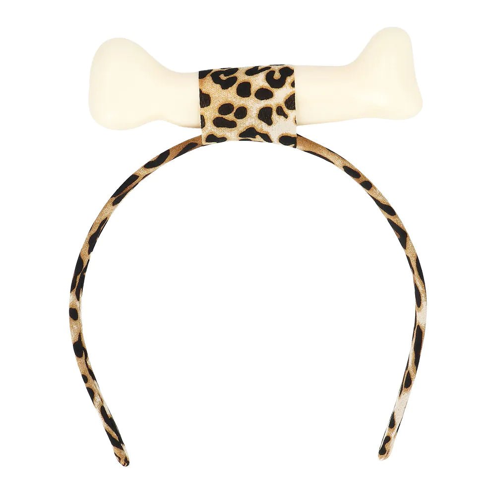 Lägg till en vild twist till din förhistoriska look med detta leopardtryckta diadem med ett lekfullt ben på toppen! Perfekt accessoar för den som vill klä ut sig till grottman på maskerad, kalas eller karneval.