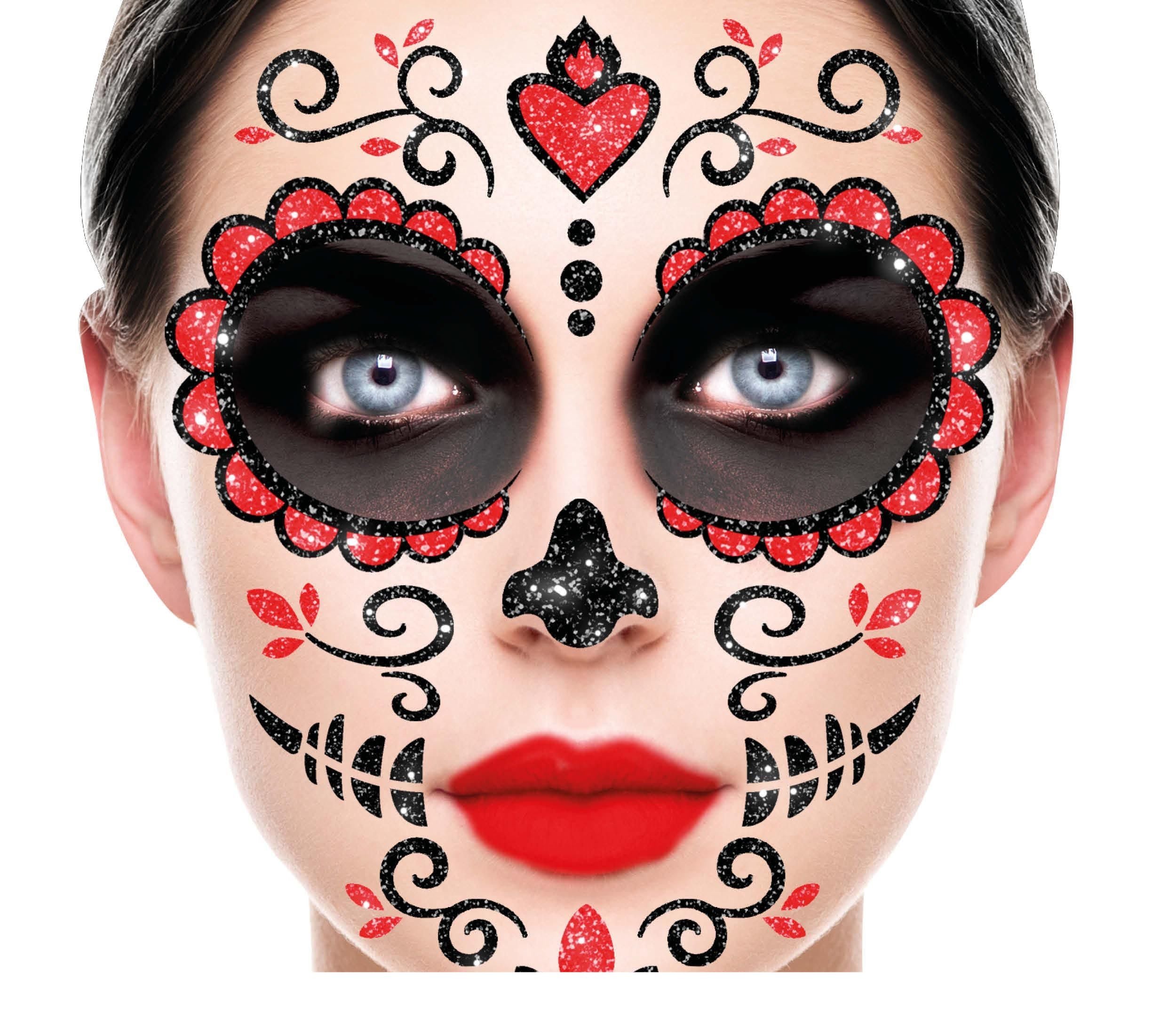 Dia De Los Muertos Ansikte Klistermärken Glitter 20cm