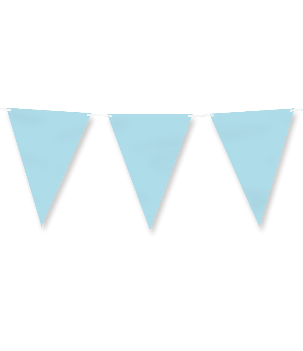 Pappersflagglina - Pastellblå är den perfekta flagglinan på en fest där färgen pastellblå är temat. Den här pappersflagglinjen har en diskret längd på 6 meter och passar perfekt tillsammans med andra pastellblå föremål som konfetti, dukar, tallrikar, muggar, servetter och snackslådor. Presentera dessa artiklar tillsammans så att det blir tydligt för kunden vad kollektionen består av. Flaggorna är tillverkade av papper, vilket gör det till ett miljövänligt val!
