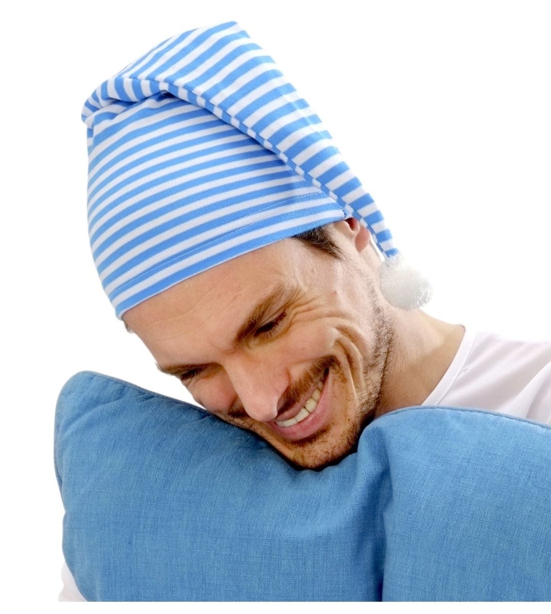 Beskrivning Recensioner Om denna produkt Beskrivning: vit-blå sovmössaMaterial: 100% polyesterTvättråd: tvättas på normalprogram max 30¡C, blekning ej tillåten, får ej torktumlas, strykas på max 110¡C, får ej kemtvättas Trustpilot