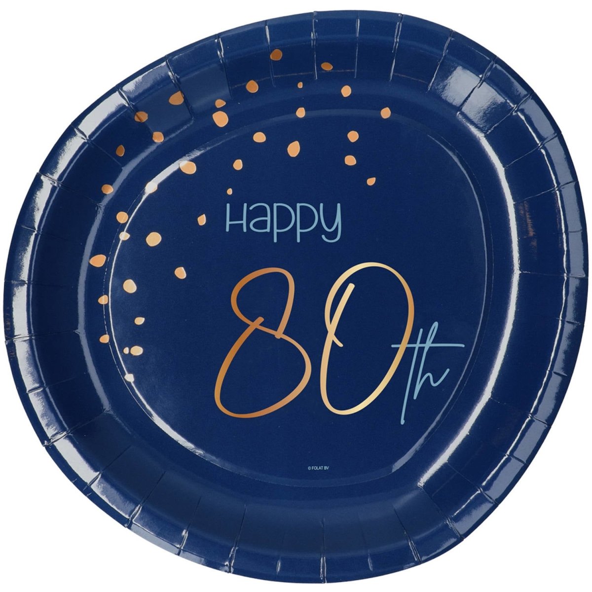 Decks Elegant True Blue 80 Years 23cm - 8 st. Innehåll: 8 tallrikar à 23 cm. Färg: Blå. Kan t.ex. användas under följande fest/festtillfällen: Födelsedag, Jubileum. En tallrik har en diameter på 23cm. Artikeln är tillverkad av papper.