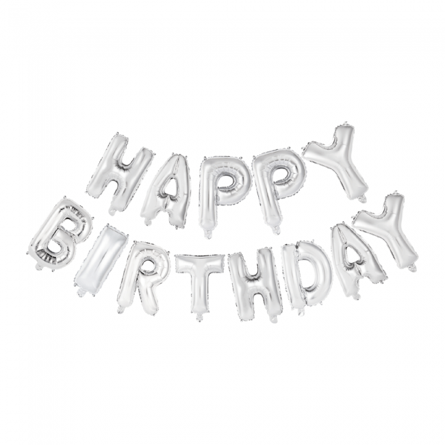 Bokstavsballongset Happy Birthday Silver