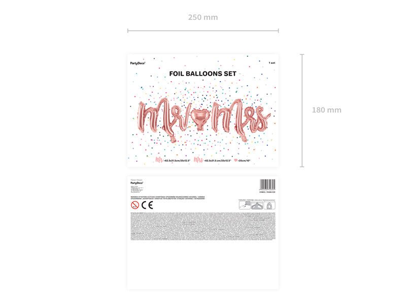 Bokstavsballongset Mr Mrs Roséguld Tom 1,25m