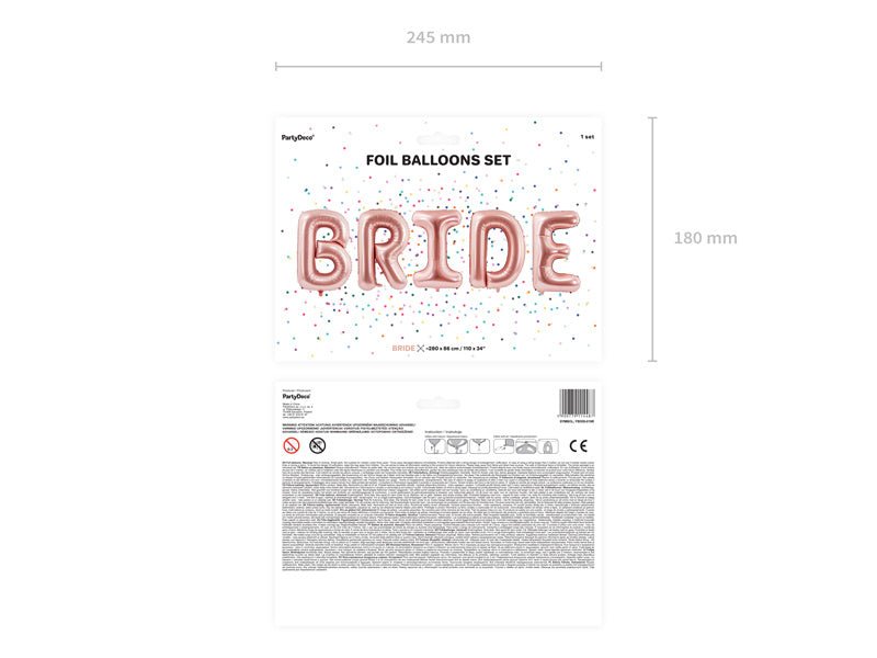 Bokstavsballongset brud roséguld tom 2,8 m