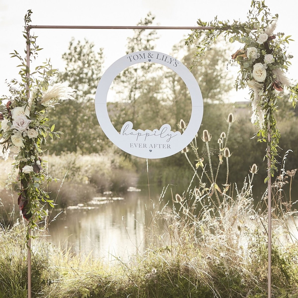 Fånga de speciella minnena med vår anpassningsbara ram för bröllopsfotobås.