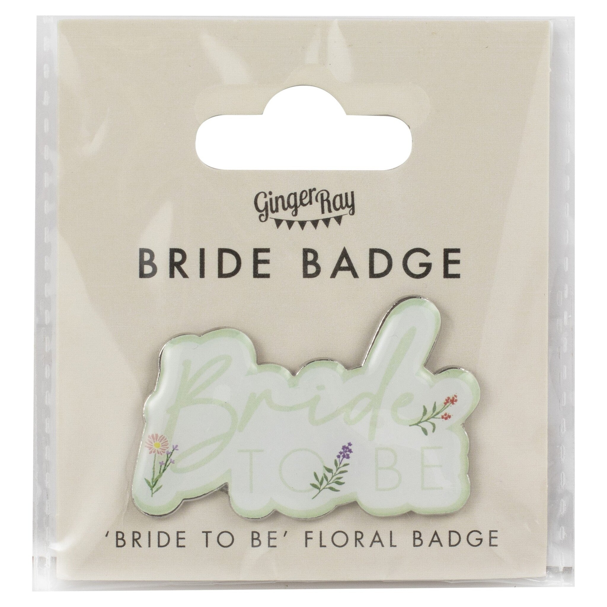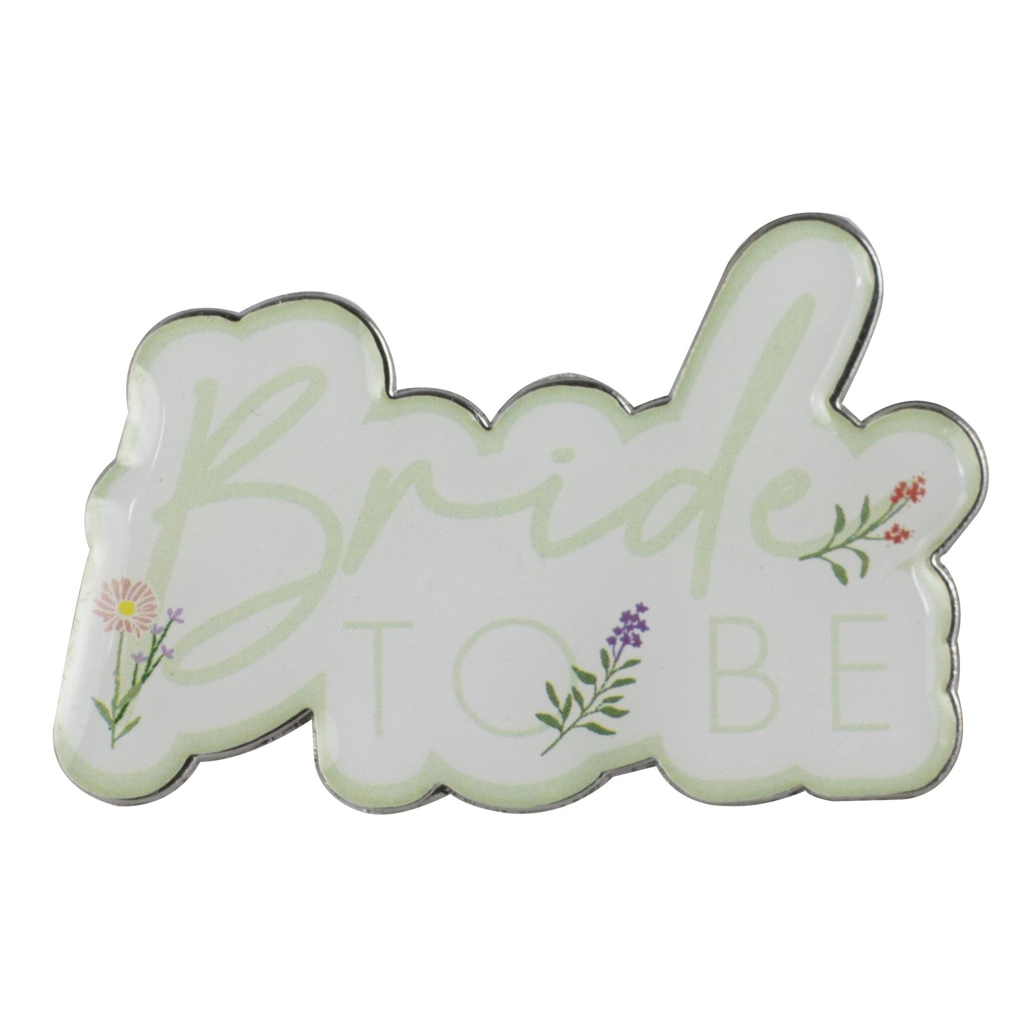 Få bruden att känna sig extra speciell med detta emaljerade "Bride-to-Be"-märke med blommor.