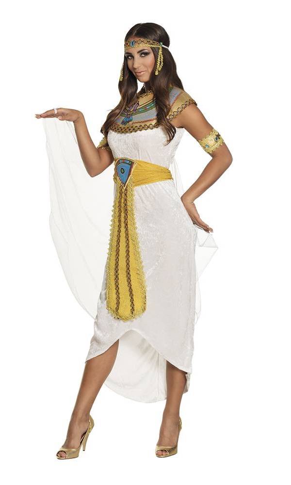 Innehåll: cleopatraklänning, pannband, krage, cape, bälte och manschetter