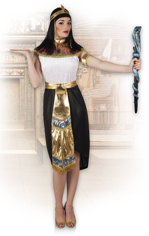 Innehåll: cleopatra-klänning, pannband, krage, bälte och armband