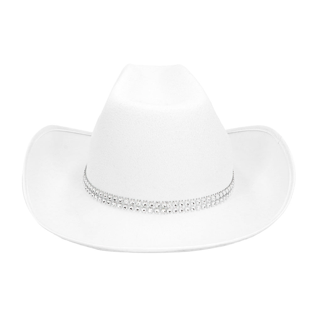 Stjäl showen med den här vita cowboyhatten som perfekt kombinerar glamour och western! Den stora silverfärgade strassstjärnan och det glittrande strassbrättet gör den här hatten till ett riktigt blickfång. Perfekt för temafester, festivaler, karneval eller en countrykväll där du vill glänsa.