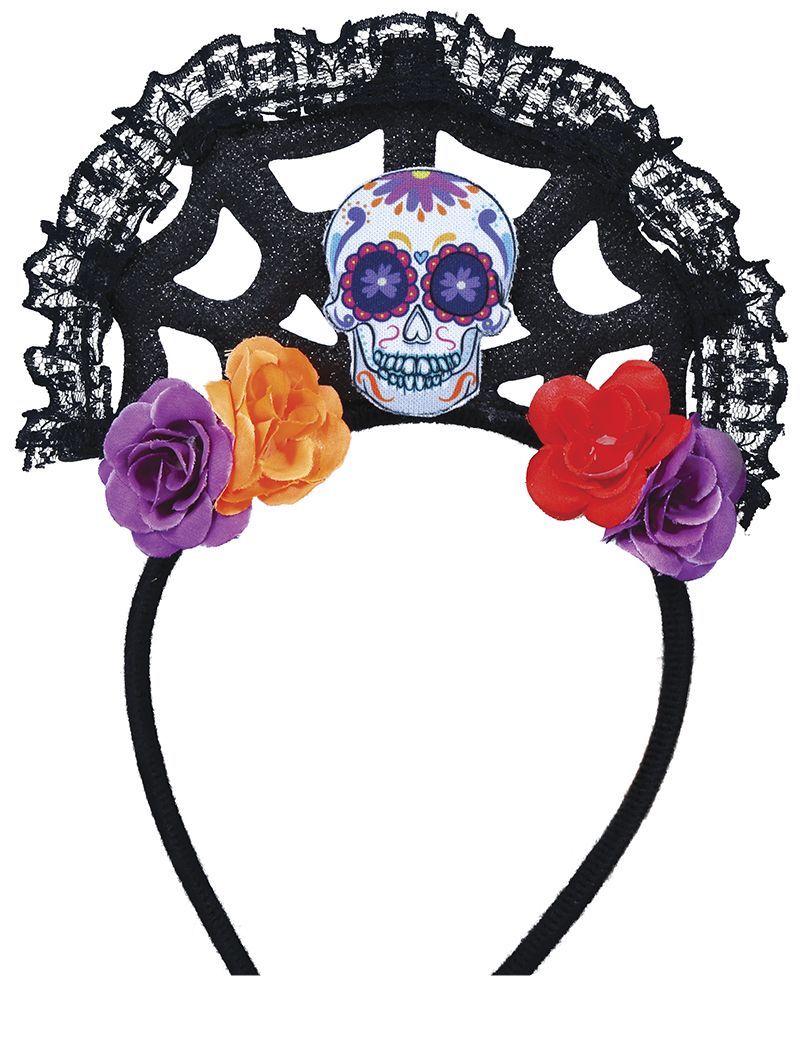 Dia De Los Muertos hårband blommor och dödskalle