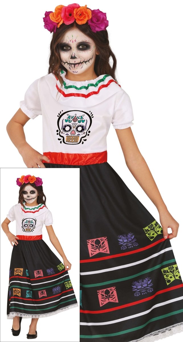 Dia De Los Muertos klänning flicka dödskalle
