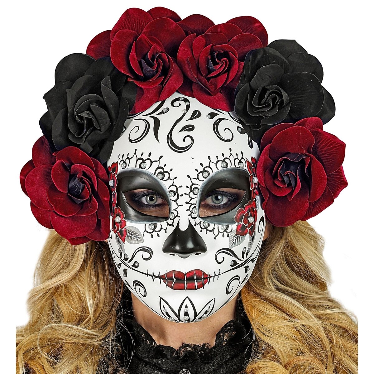 Dia De Los Muertos Mask med rosor