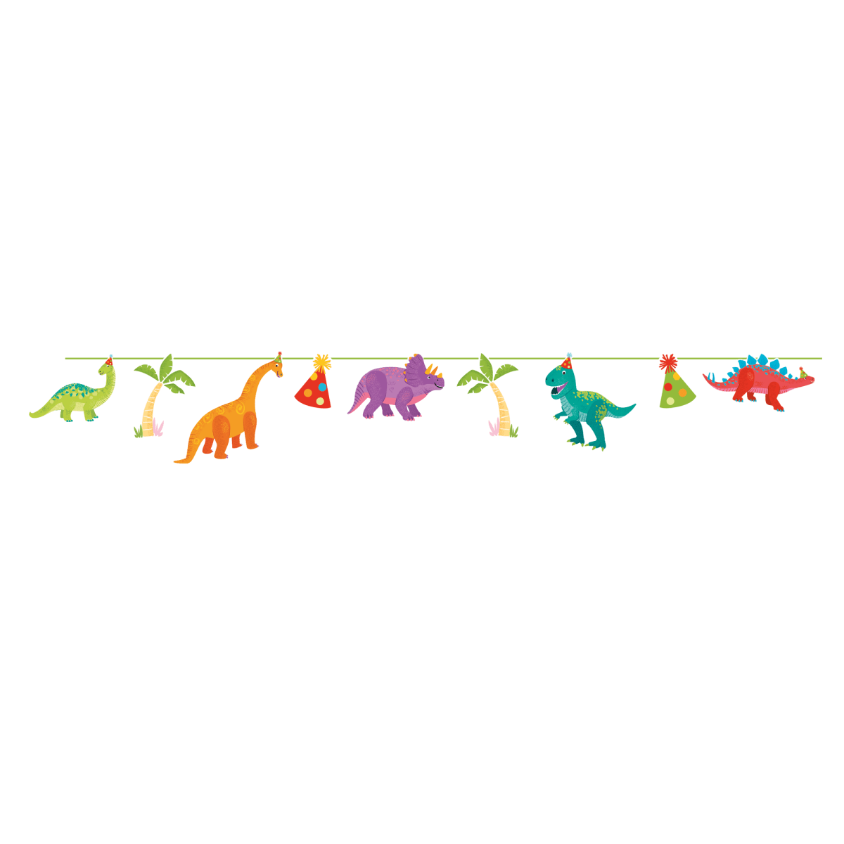 Ge liv åt dinofödelsedagar eller temafester med denna dinosauriegirlang! De glada färgerna och coola dinosymbolerna kommer omedelbart att förvandla alla rum till en festlokal.
