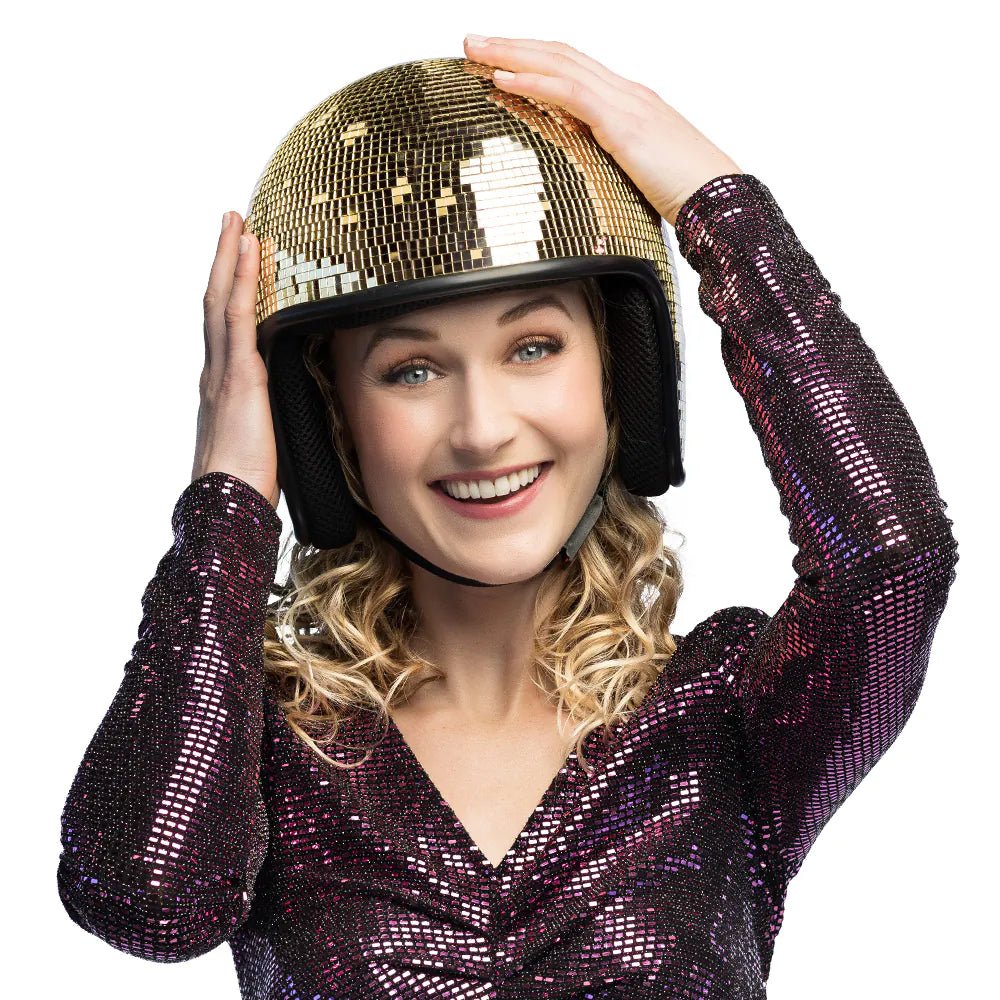 Imponera på alla fester med denna iögonfallande discohjälm i guld. Perfekt för foulpartyn, 70/80-tals temafester eller karneval! De glittrande guldspeglarna ger din outfit en omedelbar partylook. Tack vare den justerbara remmen sitter hjälmen stadigt på plats, även under de vildaste dansrörelserna.