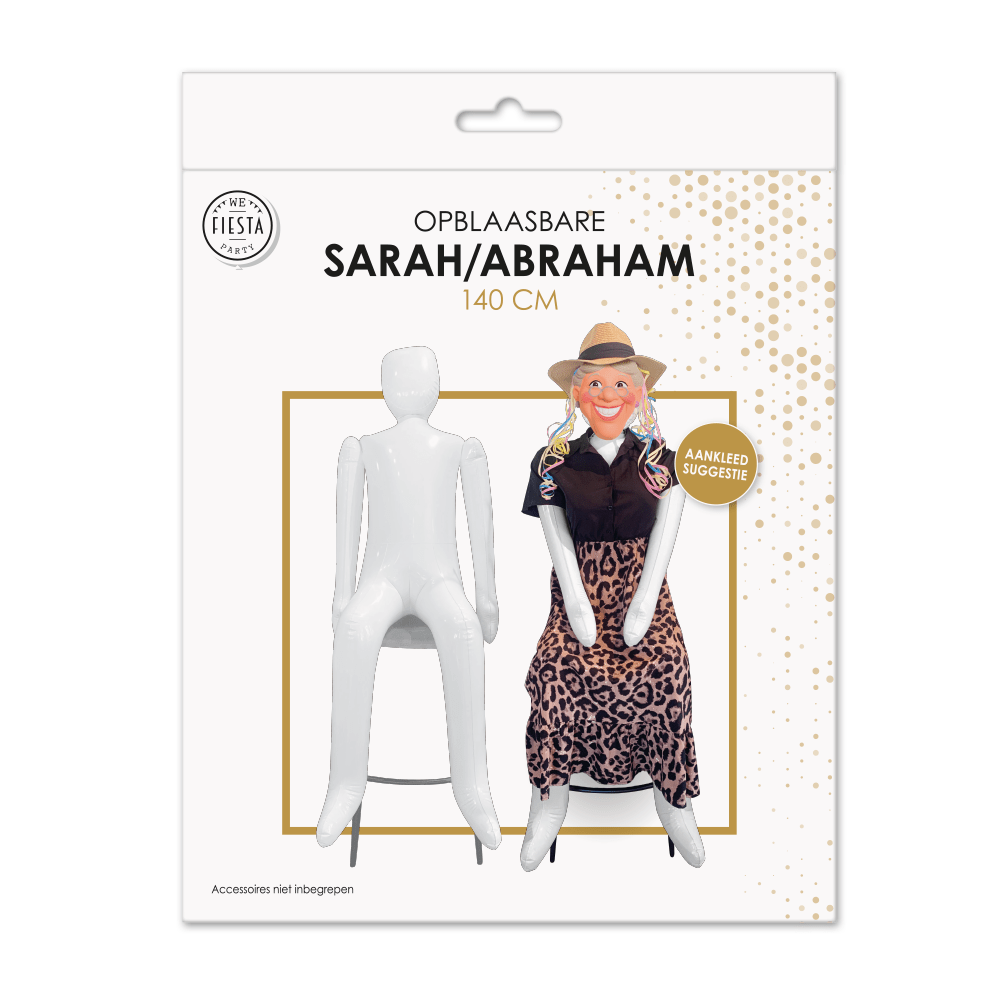 Gör en födelsedag eller milstolpe extra festlig med denna 145 × 48 cm stora uppblåsbara Abraham/Sarah-docka. Perfekt för att fira en 50-årsdag eller andra jubileer. Dockan är lätt att blåsa upp och passar för både inomhus- och utomhusdekoration. Dockan är utan dekoration.