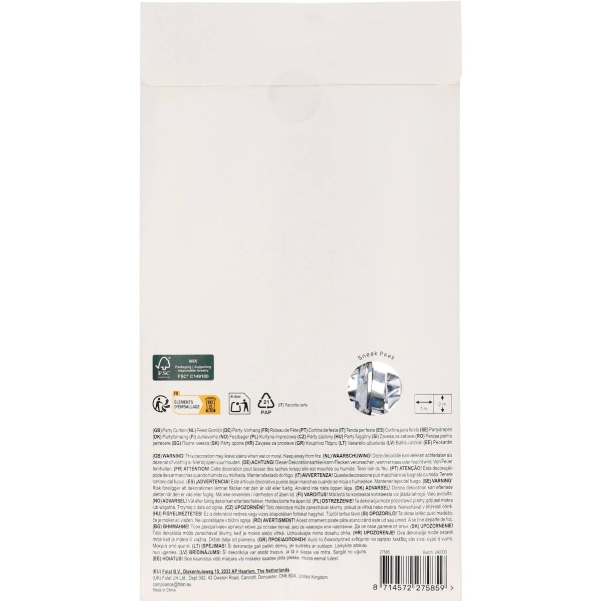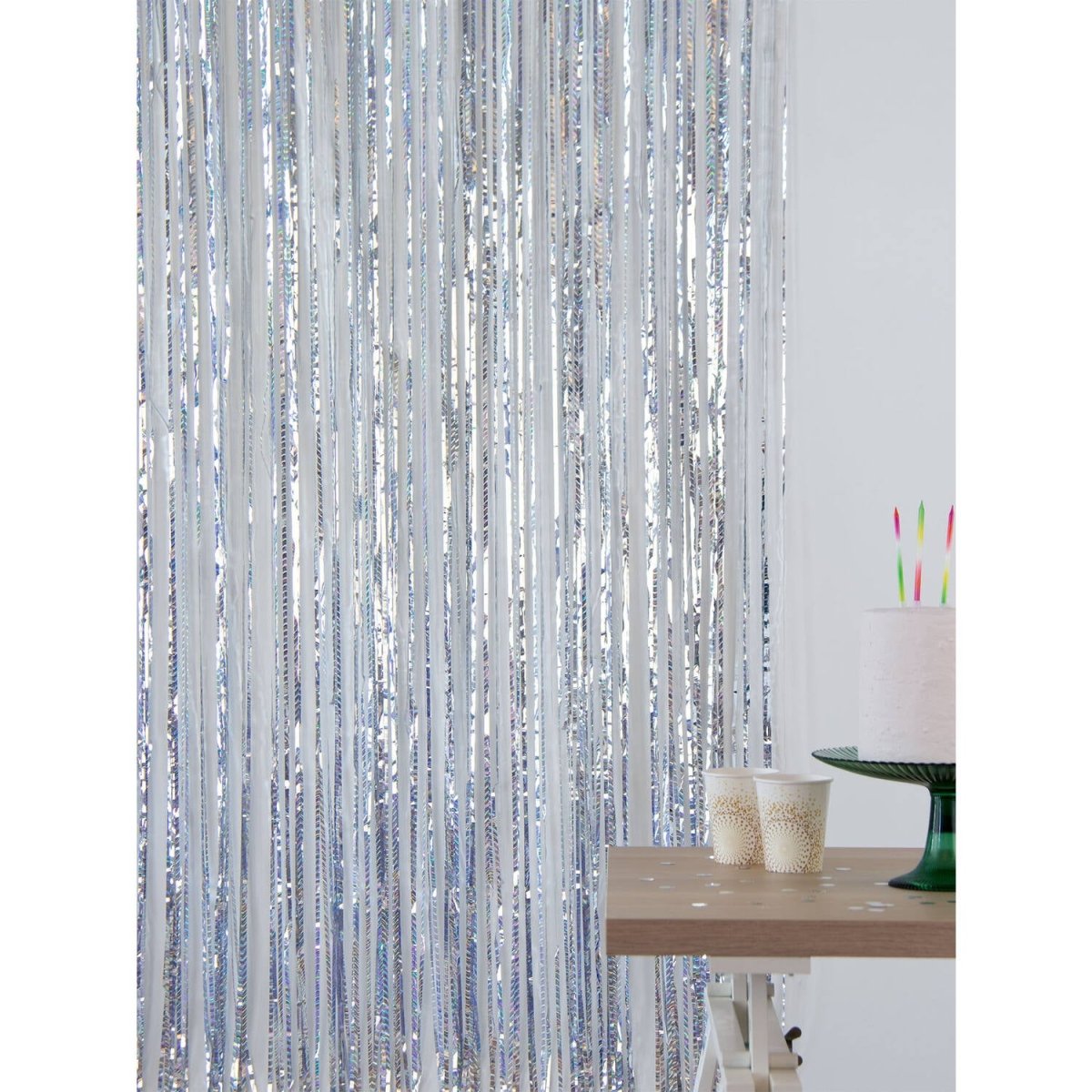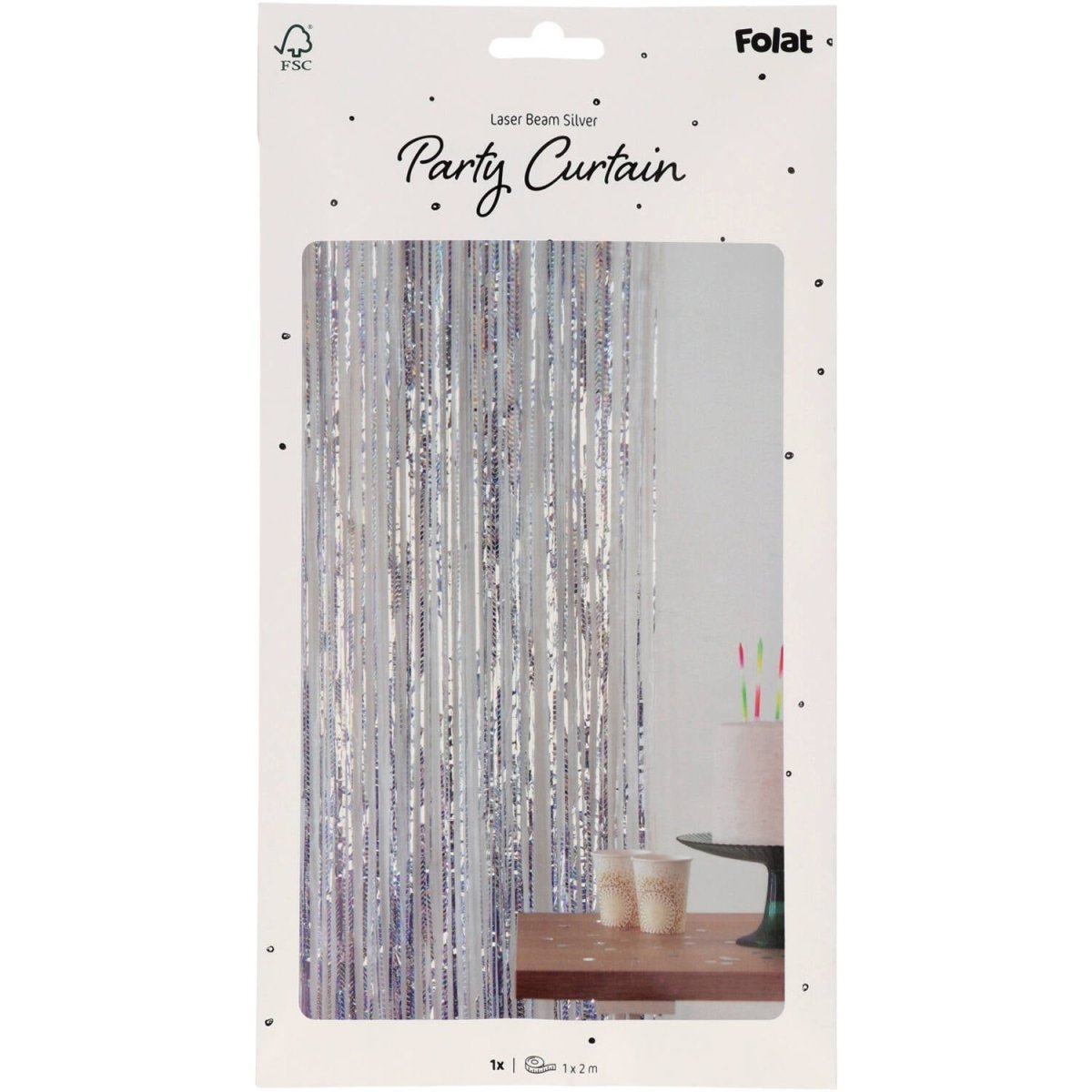En kosmisk entré. Partygardin - Laserstråle Silver - 1 x 2 m. Innehåll: 1 festridå. Kan t.ex. användas under följande fest/festtillfällen: Födelsedag, Temafest. En silverskimrande partygardin med en slags laserstråle-effekt. Rolig som dörrdraperi, men också mycket lämplig som bakgrund för oförglömliga foton. Tack vare den praktiska självhäftande kanten är denna festridå lätt att hänga upp. Denna artikel är tillverkad av folie.